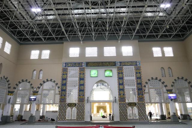 コタキナバル市立モスクです。モスクが水で囲まれているので、フローティングモスク(水上モスク)とも呼ばれるそうです。美しい建物でした。レンタルのガウンやヒジャブがあって、係の人が選んでくれました。「だんなさん、とても似合っています」などと言われると、少し嬉しく感じました。