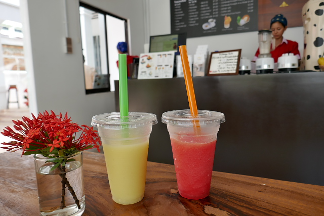 | マンゴーシェイクとスイカシェイク | レストラン「イエローマンゴー」の店内 | カボチャのスープが絶品 |