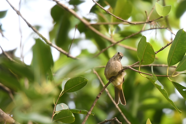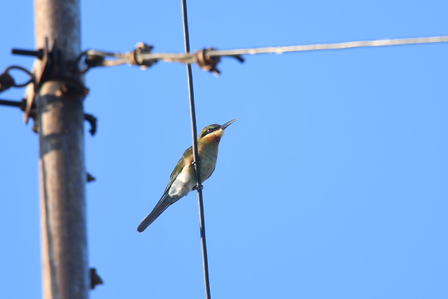 ホイアンでは、コシジロヒヨドリを多く見ました。子育ても終わりに近づいて、巣立ちした幼鳥が餌をねだっていました。ホテルの敷地にはいくつかの池があり、毎朝早く、そこの魚を狙ってでしょうか、アオショウビンが複数羽やってきました。何度も見たのですが、警戒心は強く、あまり近づけませんでした。また、芝生には、スズメに混じってマミジロタヒバリまたはコマミジロタヒバリだと思われる鳥がやってきました。ホテルの敷地以外では、ミーソン遺跡見学のときにメジロなどの鳥をみましたが、ほとんど収穫はありませんでした。