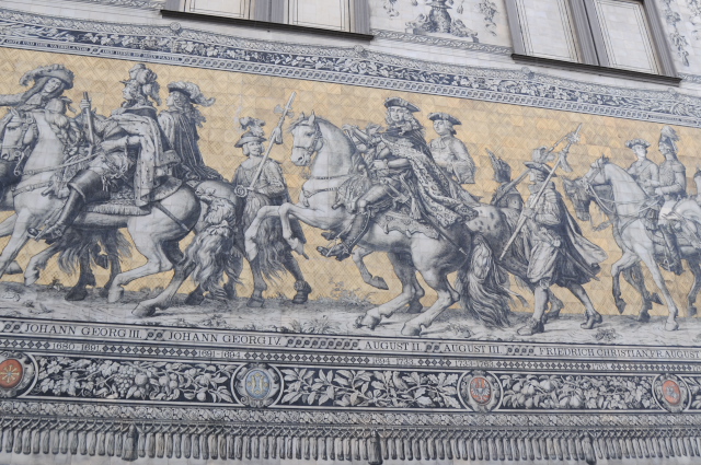 ドレスデン城の君主の行列は、マイセンで焼かれたタイルでできているが、よく戦災からのがれたものだと思う。