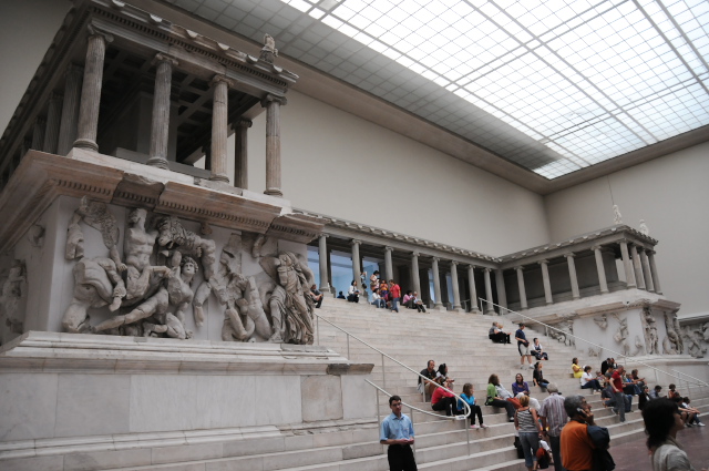 昼食の後、ベルリンの市内観光。ペルガモン博物館のゼウスの祭壇はとても大きく、階段に座っている人が小さく見えるほどだ。博物館の中に凄いものを作ったものだ。