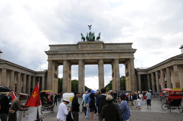ベルリンの壁や跡を示すプレート、ブランデンブルク門も見学。添乗員さんによると、ドイツ統一後、ベルリンの街は急速に整備が進んで、変化が激しいそうだ。あちらこちらで工事や建物の建設をしているところがあった。