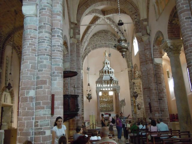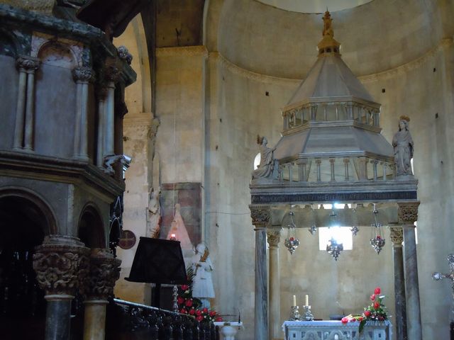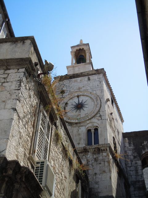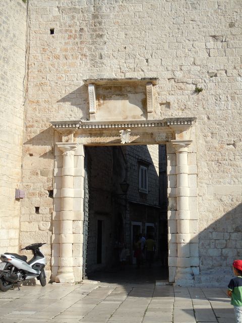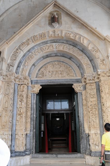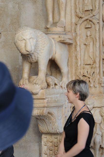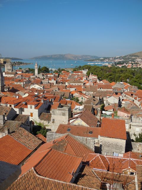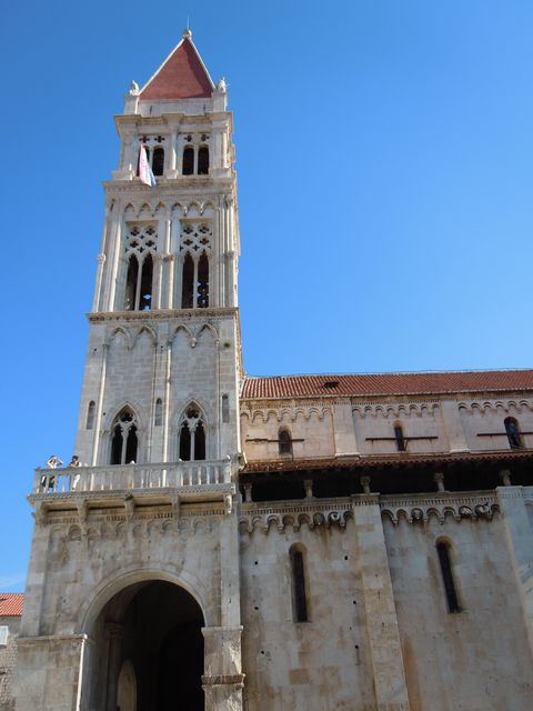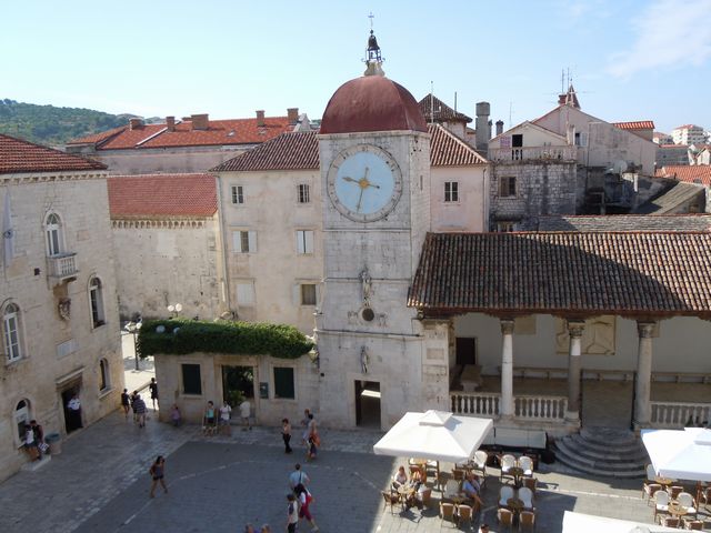 この日の観光は、8時から2時間ほどトロギール旧市街を歩いたが、旧市街は観光客であふれていた。聖ロブロ教会は、説明によると13Cから300年をかけて完成し、いろいろな建築様式が混在する教会とのことである。118段の階段を征服して鐘楼にも上ってみた。なかなかの眺望だった。
