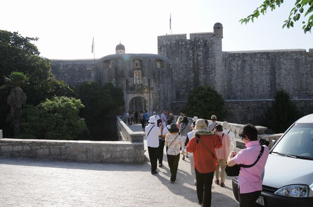 午前中はドブロブニクの見学。ドブロブニクは周囲2qの堅牢な城壁で囲まれた都市国家だったところ。ガイドの説明によれば、造船や海運、商業などによって財力を蓄えて、あちらこちらに税金を納めて都市国家として自治を守ってきた歴史がある。長く続いたが、ナポレオンによって1806年に共和制が廃止されて以後衰退していった。ドブロブニクは、ハードも見事だがソフト面でも福祉などの行政サービスなど、学ぶ点は多いという。