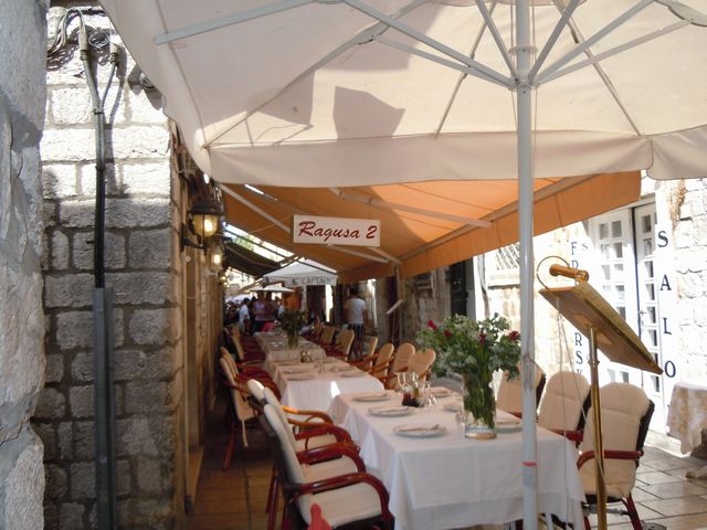 午後1時少し前にスプリットを発ち、ドブロブニクへ向かう。バスに設置してある外気温の温度計は34℃そして2回目の休憩地が近づく頃には36℃になっている。日本の暑さと変わらない。午後7時頃ドブロブニクに到着し、旧市街の中にあるレストランで夕食をとった。