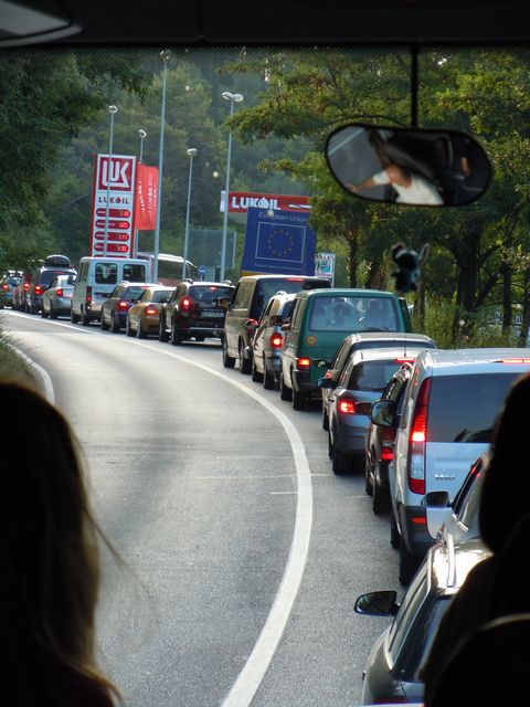 ドブロブニクへの帰り道は、フェリーに5分間乗って、湾をショートカットして30〜40分の時間短縮を図り、覚悟して国境へ向かった。渋滞区間を1時間30分ほどで通過、午後8時20分頃到着することができた。
