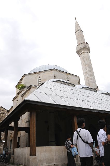 国境を越えてボスニア・ヘルツェゴヴィナに入り、ドライブインで休憩をとるなどしながら11時前にモスタルに到着した。国境を越えると、イスラム教のミナレットを見る機会も増え、宗教も違うんだと感じた。道路の左右にはビニールハウスをたくさんみた。ブドウ畑も広がっている。