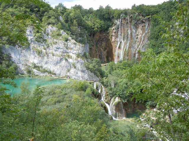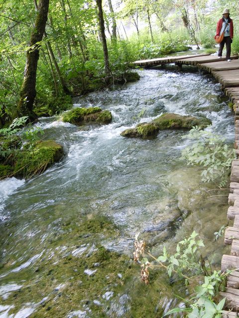 ホテルのすぐ近くがプリトビチェ湖群国立公園入り口になっているので、あるいて門をくぐる。ハイキングのスタート地点までバスで移動して木道を歩き始める。現地ガイドは、1400種以上の植物があること、樹木は75%がブナの木であることを説明していた。大きな滝のところではちょっとだけとまって写真撮影の時間をもらったが、あとはどんどん歩く。水の流れる風景や花や鳥などをゆっくりと見ていられないが、それでも気分は最高だ。途中ボートに乗って移動し、再び歩いて予定コースをあっという間に終了した。立ち止まる時間が欲しかったが、時間的にはちょうどよい時間に到着したようだった。