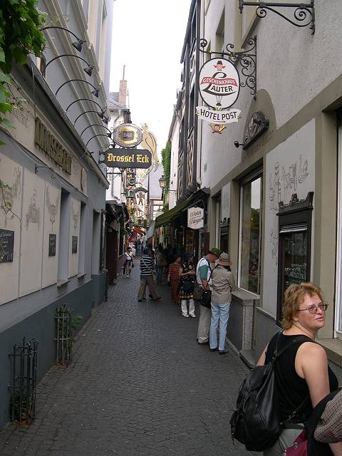 | つぐみ横町 リューデスハイム。ワインレストランが軒を連ねるが、朝なので静かだった。 |