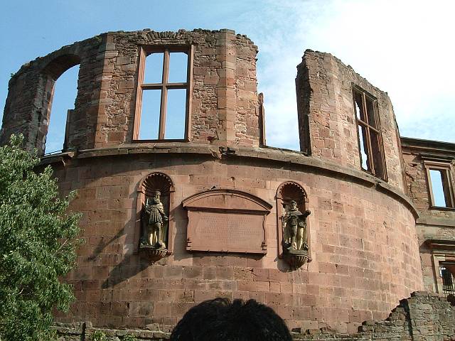 | ハイデルベルグ城 30年戦争後、ルイ14世率いるフランス軍によって大きく破壊された。 |