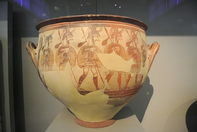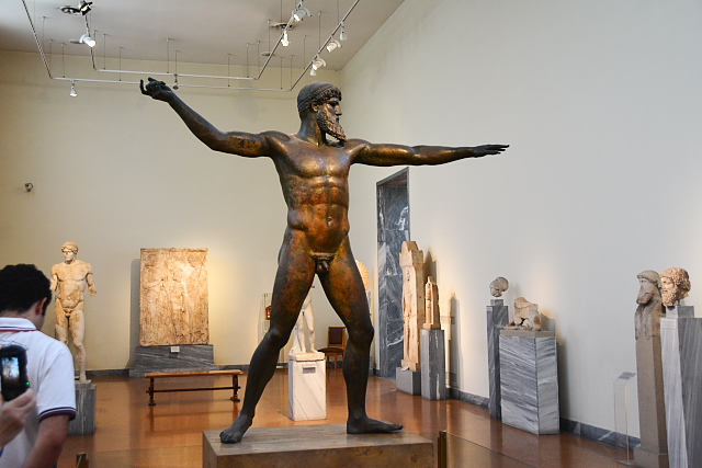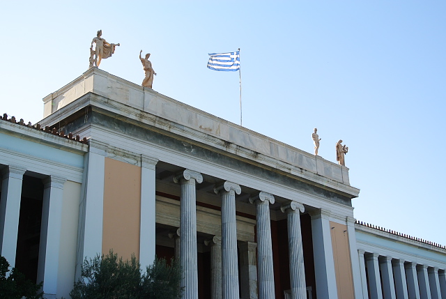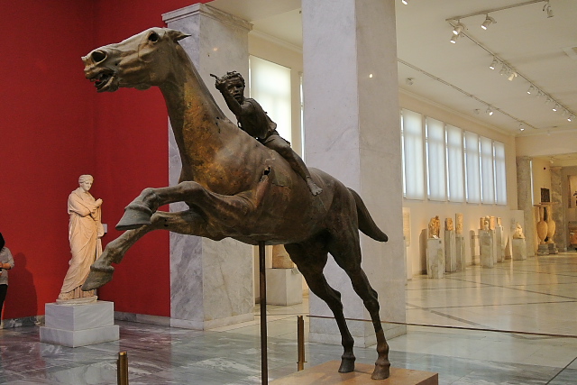 国立考古学博物館は、ミケーネ文明の部屋と彫刻コレクションの部屋を見学した。ミケーネ文明は紀元前ペロボネソス半島で繁栄した文明で、出土した黄金のマスクなどが展示されている。彫刻コレクションの古代彫刻の規模は世界有数という。「馬上の少年像」は躍動感にあふれ、動画を見ているような感覚を覚えた。
