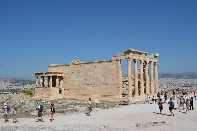 ブーレエの門、前門を通ると、6人の少女像の柱を持つエレクティオンやパルテノン神殿が見えてきた。