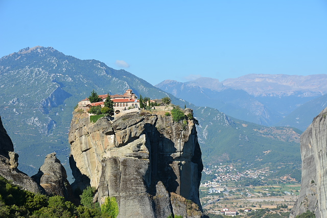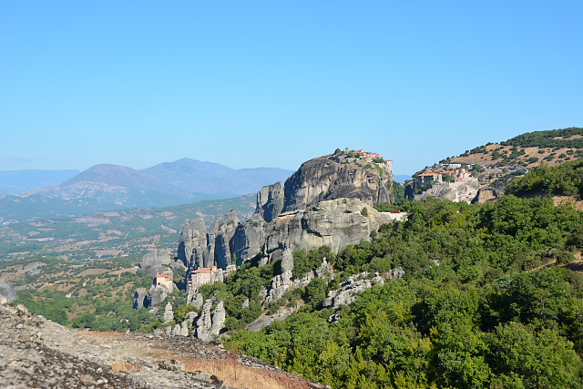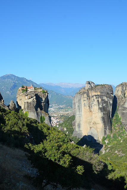 旅行前の知識との差がもっとも大きかったのがメテオの奇岩群の風景である。深い谷からキノコのように生えている奇岩は、実物を目の前にして初めて、その大きさや険しさ、そして驚きが伝わってくるものであった。奇岩という点では、トルコのカッパドキアにも似ているかもしれない。この奇岩の成り立ちははっきりとしていないらしいが、いずれにしても水や風などの自然の力によってできたものだろう。さらに、岩の天辺に修道院があり、想像を超えるようなところに人間の手が加えられてこの風景ができあがっている。