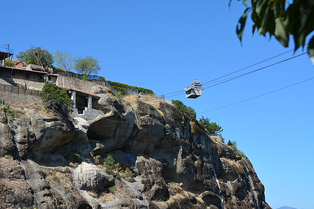 メテオラでは最大の修道院。14世紀に聖アタナシオスによって開かれた。昔使われた生活の道具が展示されていたり、必要な物資を運ぶケーブルを使った装置をみた。外に出ると、偶然このケーブルを使って人が移動していた。