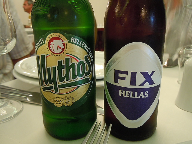 この日昼食に出された名物料理がドルマダキアである。ライスと香草のブドウ葉包みである。いやではなかったが、好きになるには時間がかかりそうだ。鶏肉とオクラの付け合わせのほうは、鶏肉はおいしかった。オクラの煮込みは食感がなく、こちらは時間がかかってもダメそうだった。ビールは何種類かあったが、最初にミソスを飲んだせいかこのビールが気に入った。