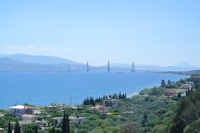 デルフィ観光後は再びイテアに戻り、海辺のレストランで昼食をとってからオリンピアに向かった。途中美しい橋を通った。2004年のアテネオリンピックに合わせてつくられた橋で、リオン・アンティリオン橋という名前の橋だった。