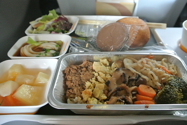 機内食の鶏そぼろ丼は印象に残っている。美味しかったと思う。そういえば、昨年、ポルトガルからの帰りもこのメニューだった。