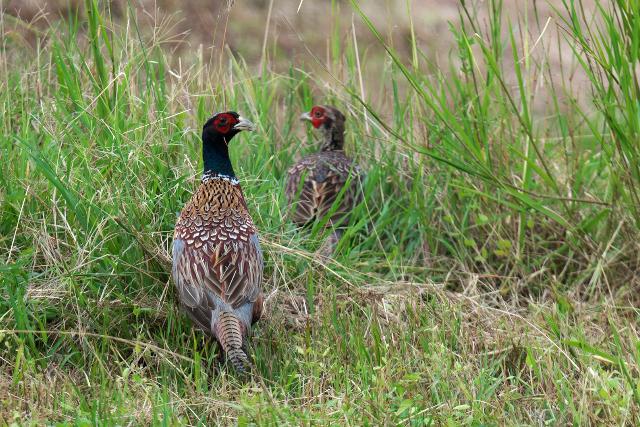 いそうなところを何カ所か回って、ようやく姿を見ることができました。畑で成鳥2羽と草むらに幼鳥1羽を見ました。この鳥を実際に見る前、写真から羽の色や模様が好きになれませんでしたが、そのうち慣れていった気がします。