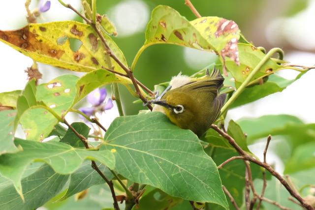 バンナ公園渡り鳥観察所に到着すると、早速、雄が肉眼で確認できる程度の木に止まっているのを見ることができました。餌取りをしていたようです。