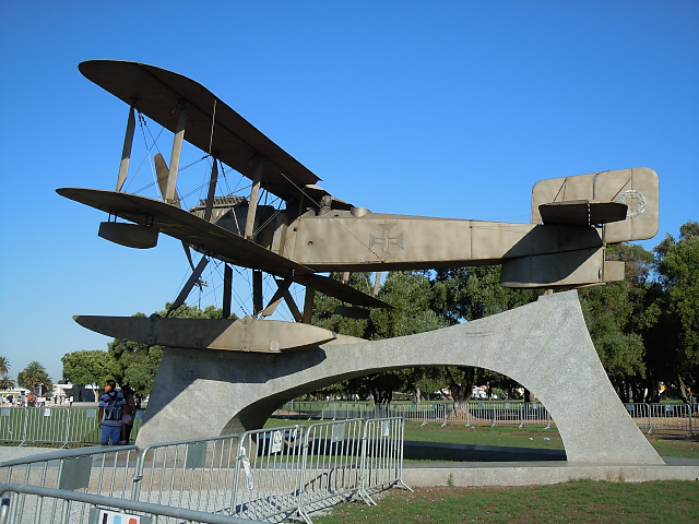 バスで、リスボン市内のベレンに向かった。途中、バスの中から水道橋を目にしたが、18世紀につくられたもので、リスボンから約70q離れたところから水を引いていたという。バスを降りて、ベレンの塔を見学した。バスを降りたすぐ近くには水上飛行機があり、1922年に大西洋を横断してブラジルのリオへ行った飛行機のレプリカであった。胴体には十字架が刻まれている。