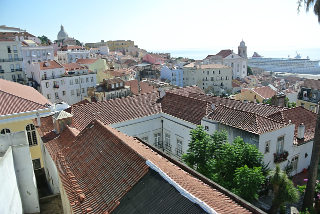 リスボンで最も古い街並みが残るアルファマ地区の丘の頂上に立つ城。古代ローマの砦が基となった城で、街の眺めが良い場所である。この日は天気も良く、街並みやテージョ川を行き来する渡し船などもよく見えた。