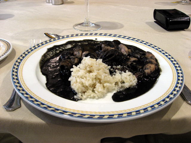イカの墨煮とライス 昼食 美味 |