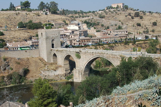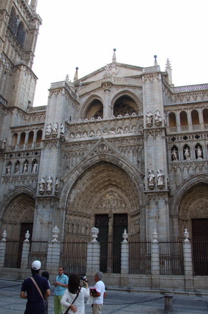 9時30分、ホテルを出て徒歩でトレド市内を見学。カテドラル、市庁舎、サント・トメ教会を見学。カテドラルにはスペインの主席大司教座がある。この日、8月15日は聖水がふるまわれる日だった。写真のように、並んでいる丸い壺を手に取り、高く掲げて口を付けずに飲む。飲むと健康でいられるという。サント・トメ教会ではエル・ゴレコの「オルガス伯爵の埋葬」を見て、「どの人が作者でしょう」などと質問されながら、絵の説明を受けた。エル・グレコの石碑、サンマルティン橋をみながらバスまで移動した。最後に、タホ川を隔てたトレドの全景をもう一度見てからマドリードに向かった。