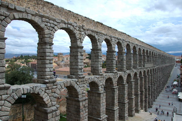 アビラは11世紀につくられた高さ11〜12m、長さ2.5qの城壁が残っている町だ。石の町、聖人の町と言われる。また、セゴビアは長さ728mのローマの水道橋、ディズニーの白雪姫の城のモデルにもなったアルカサルを見学する。