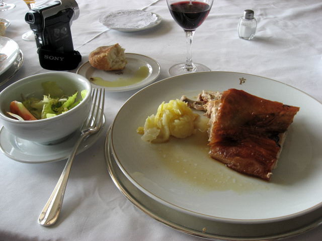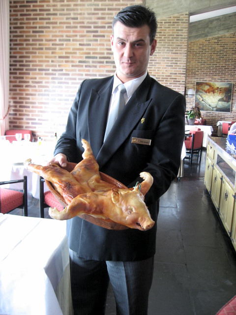 セゴビアのパラドールで名物の子豚の丸焼きを昼食に食べた。味は良いが量は多く、私は2/3ぐらい食べたが、完食した人はごく少ない。パラドールからの眺めはすばらしくよかった。