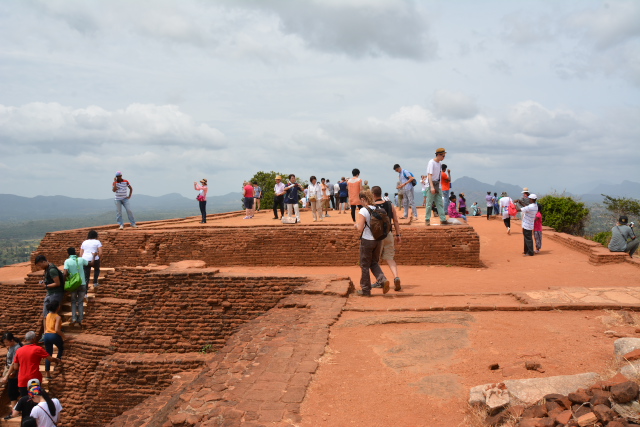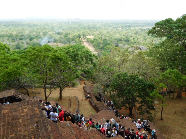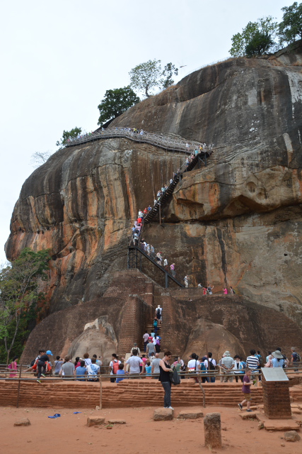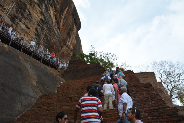 長く続く列 シーギリアロックに登る |