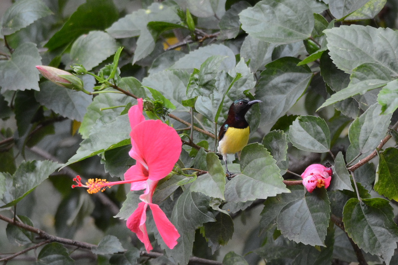ツアーに参加した方が、昨日の朝ホテルのプール脇で写したというシロハラクイナの写真を見せてくれました。海鳥が期待はずれだったので、ゴールでのバードウォッチングはあきらめていたのですが、これに触発されて、探す場所を海岸から近くの村の中に切り替えて行ってみました。するとこれまで見ていなかった鳥たちに出会い、村の人もキャンディの人たちと同じように気持ちよく挨拶に答えてくれ、ここでも楽しいバードウォッチングをすることができました。ホテル近くに戻ると、道を横切るシロハラクイナにも出会うことができました。