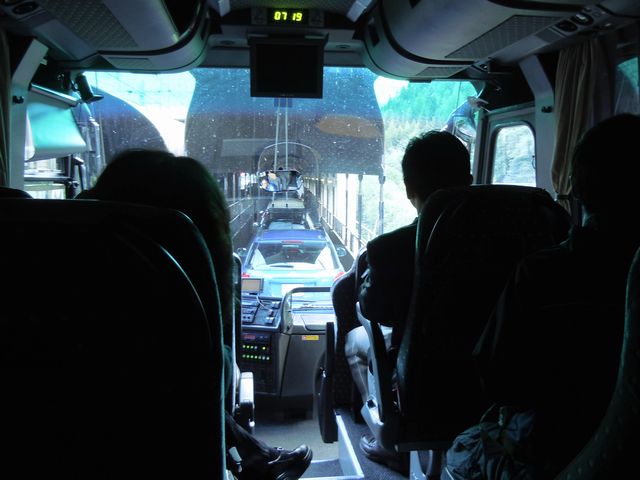 | カートレインに乗ったバス レッチベルクトンネル |