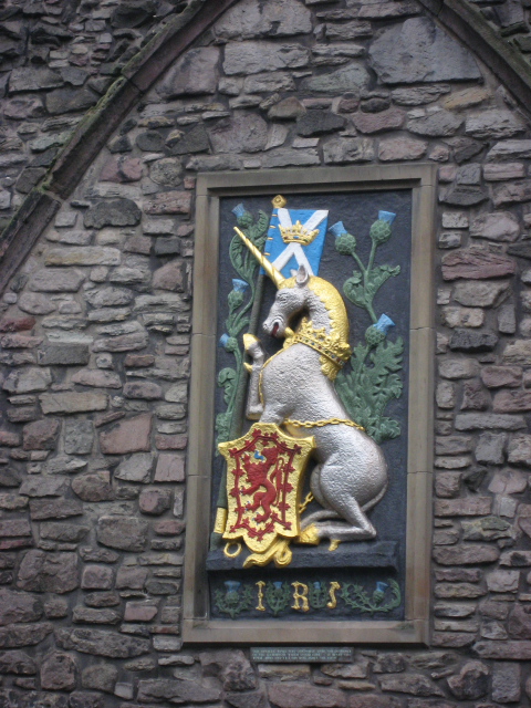 朝食後、ホテルを出発してエディンバラの市内観光に向った。英国女王のスコットランドの公式の居所となっているホリールード宮殿(The Place of Holyroodhouse)は門の外から見学。他の団体と一緒に中に入った人が、すぐに出されてしまったが、ちゃっかり写真は撮ってきていた。この宮殿はエディンバラ城から伸びるロイヤルマイルの終点にあり、カールトン・ヒルの麓にある。現地ガイドのハードウィック・カヨコさんの説明によると、門柱左上のライオンはイングランドの象徴、右上のユニコーンはスコットランドの国の紋章とのことだ。