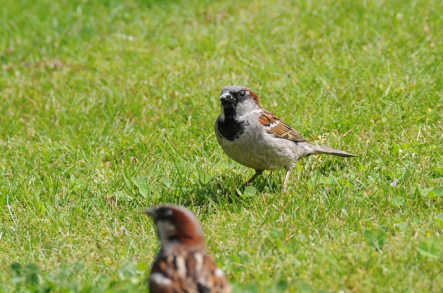 クロウタドリ 幼鳥が餌をもらっていた |