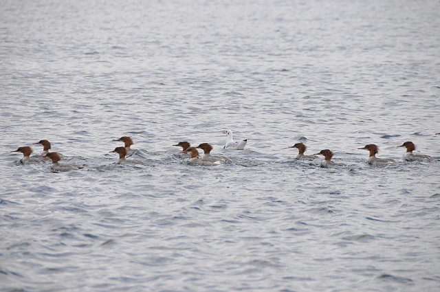 遊覧船からは、湖上に小さな群れで泳ぐワアイサなどを見た。また、海岸にはカナダガンやミヤコドリがのんびりしていた。
