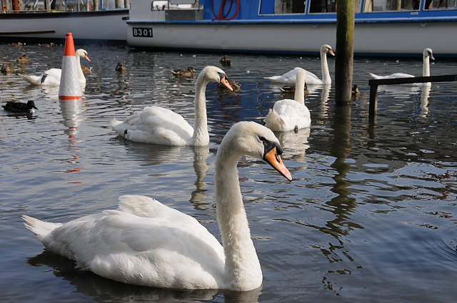 ウインダミヤ湖遊覧船乗り場では、マガモ(Mallard)、コブハクチョウ(Mute swan)、ユリカモメ(Black-headed Gull)、ニシセグロカモメ(Lesser Black-backed Gull)、カナダガン(Canada Goose)などが見られ、カナダガンやコブハクチョウなどは人に慣れている様子だった。