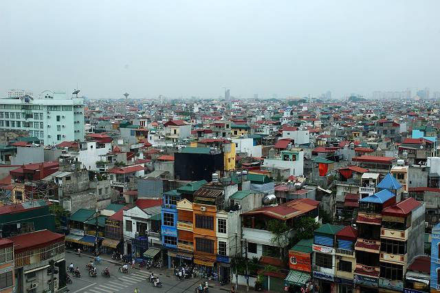 街が近づくと、バイク量が増えてきた。自動車は新車のカムリが600万円ほどで、かなりの税金が掛けられれているらしい。車は少なく、バイクの中に車が走っているという印象だ。家は土地が高いので節約のため、3、4階建ての家が多く、ペンキは建物の正面のみ塗られることが多い。