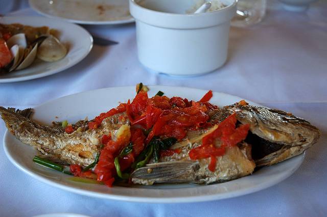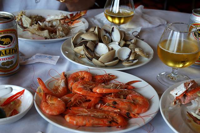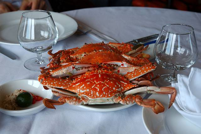食事でおいしかったのは、ゲー・ハップとよばれる花がにの蒸し物だ。ザウ・ムオン・トイ(空芯菜のニンニク炒め)もよかった。