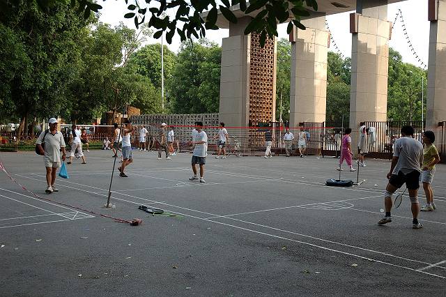 湖の形は150m×200mぐらいの長方形の形をしている。湖を囲むように車道が走っているが、その内側に歩道、さらにその内側にベンチがおかれていたり、バドミントンのコートがあったりする。湖の周りは人でいっぱいだ。何をするでもなく、ぼんやりと座って朝を楽しんでいる人、一人で足を振ったりして運動している人、走っている人、歩いている人、ノンをかぶり天秤棒で荷物を運び行商をする人、健康器具を歩道に置いてレンタルしていると思われる人、湖の岸に浮かんでいる食べられそうな死んだ魚を拾う人、などなど。老若男女さまざまな人であふれている。
