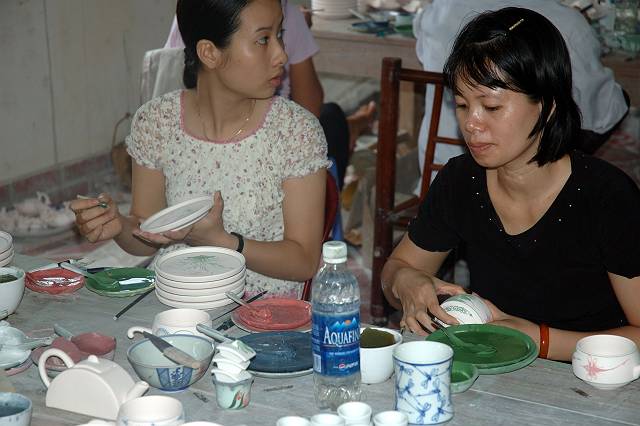 昼食後バッチャン村へ。細い道を30分かけて行き、上階が工房で下が店になっているところを見学した。絵付けが上手だったことや、製品がたくさん並んでいたことが頭に残っている。家内は亀の形の醤油差しを求めた。