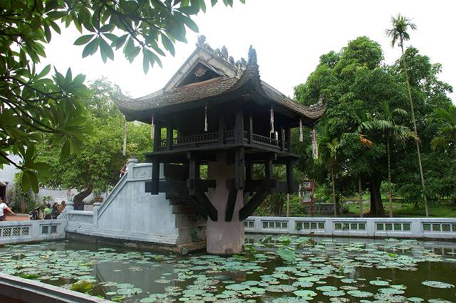 市内に戻って、一柱寺見学。1049年の創建で、蓮の花にみたてて建てられたという。一本の柱の上に仏堂をのせた変わった形の寺だ。