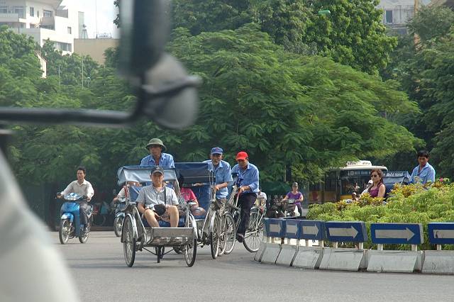 シクロは人力車と自転車の合体した乗り物で、前の部分が椅子で後ろから自転車でこいで押す形になっている。目線が車より低いこと、スピードがゆっくりであるところがいい。街の様子がじっくりと楽しめる。そして何より、道路をバイクの群れに気を遣わずに走れるのがよかった。バイクのクラクションをものともせず、ゆっくりとハノイの街を流してくれる。30分はあっという間だった。