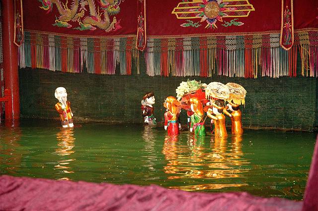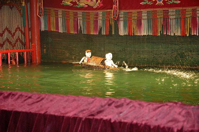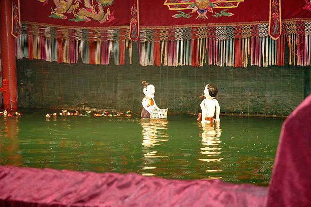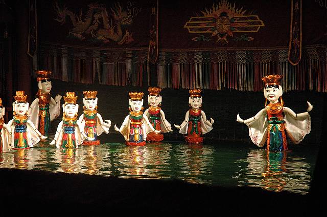 水上人形劇は、人形の動きを見るのも楽しかったが、その横で演奏されているベトナムの伝統楽器の音色や歌が素晴らしかった。両者の息があっていて楽しい時間を過ごすことができた。
