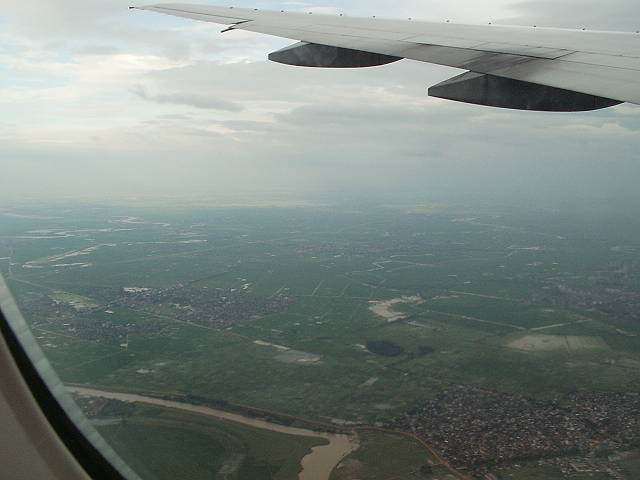 高度を下げると、田園風景。いたるところに水たまりのような沼とも湖ともいえるような景色が見られた。無事着陸。田舎の飛行場のような大きくはない空港だった。