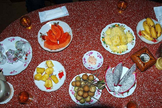 中州の島で降りて、果樹園見学。南国の木がただ生えているようでもあるが、持ち主が区分され手入れされているのだろう。ココナッツキャンディー工場を見学し、果物で作った製品を見せられて果物を食べた。残念ながらこれは味がいいという果物は見つけられなかった。ドラゴンフルーツは見た目はいいのだが、私はあまり好きではない。