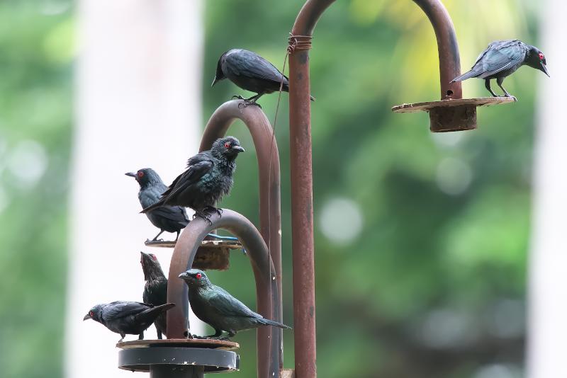 カワラバト(ドバト)、スズメ、ミドリカラスモドキ、コアオバト、ヒメコノハドリ、キンパラ、チョウショウバト、インドハッカ